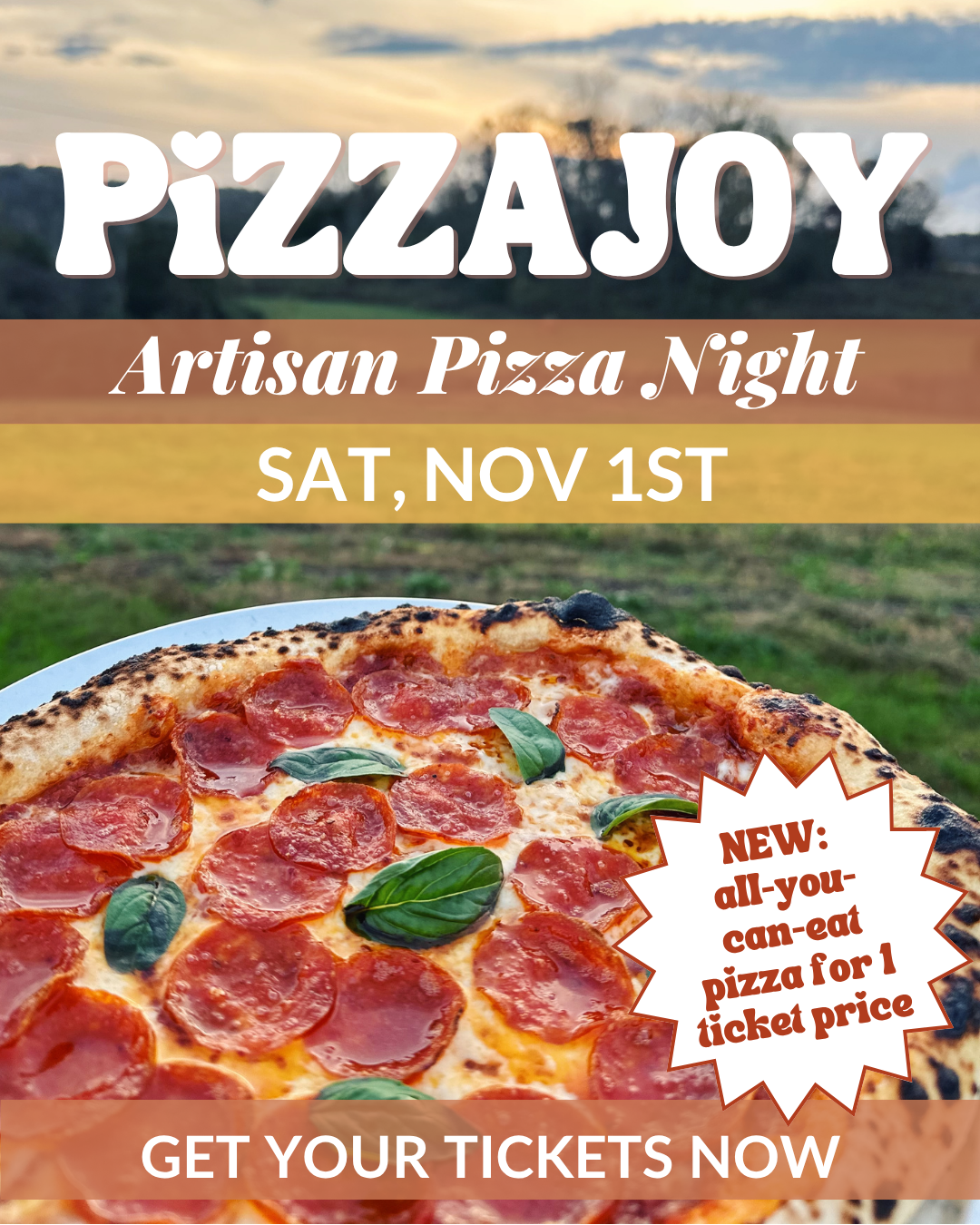 Get your tickets for our PIZZAJOY Artisan Pizza Night on Saturday, November 1st! Don’t miss this family-friendly evening on the farm where you can come and enjoy Chef Steven's famous 72-hour fermented artisan pizza cooked on Gozney ovens! 🔥